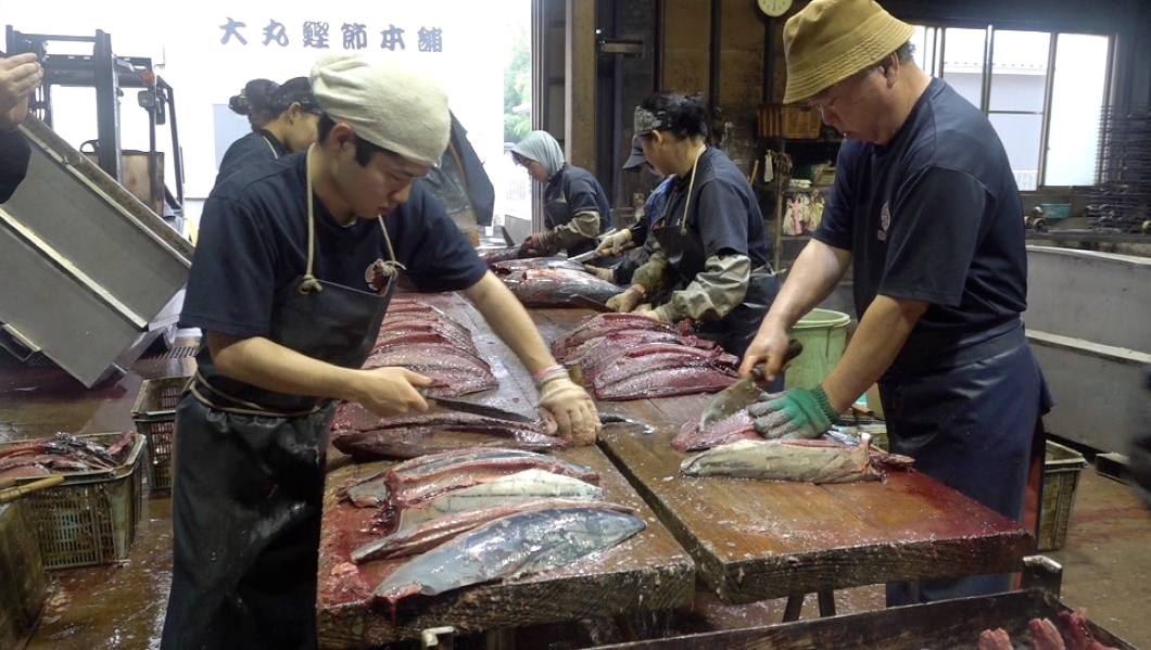 작업은 이른 아침부터 시작된다. 전날부터 해동해 둔 가다랑어를 손질하는 과정이 가장 먼저 이루어지는데, 하루에 다루는 양만 해도 수 톤에 이른다.