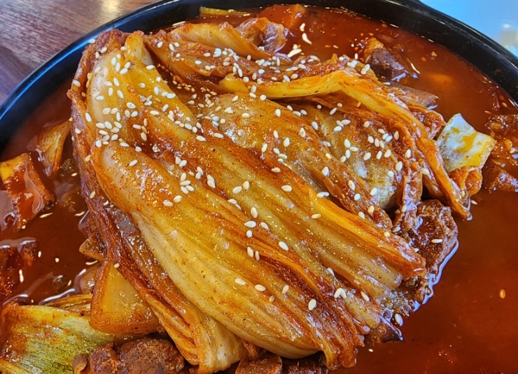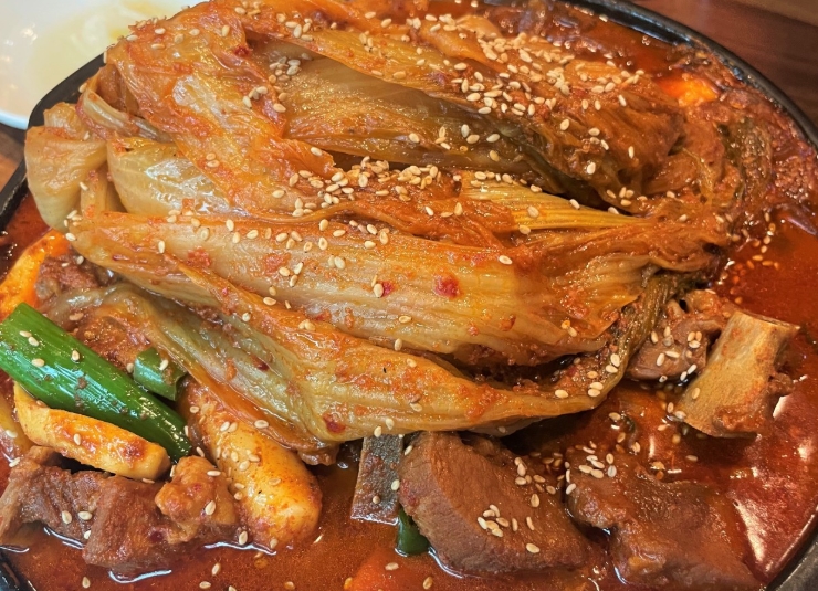 대표 메뉴인 묵은지 매운돼지갈비찜은 얼큰한 양념 속에서도 묵은지의 숙성된 맛이 중심을 잡아준다. 단순히 매운맛에 치우친 구성이 아니라, 묵은지와 고기의 조합이 만들어내는 깊은 맛이 특징이다.