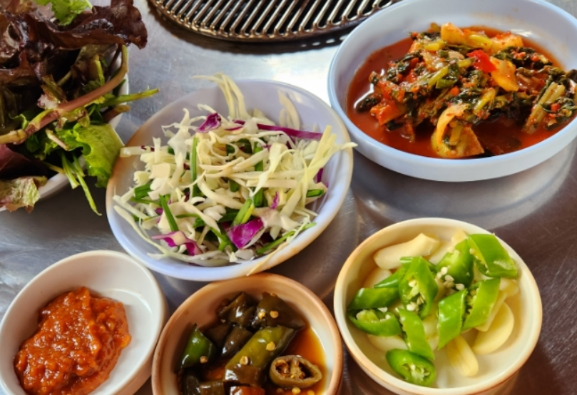 곁들여 나오는 기본 반찬들도 이 집의 완성도를 높이는 요소다. 김치와 장아찌는 고기의 기름진 맛을 적절히 잡아주면서 전체적인 균형을 맞춰준다.